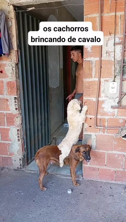 os cachorros brincando de cavalo
