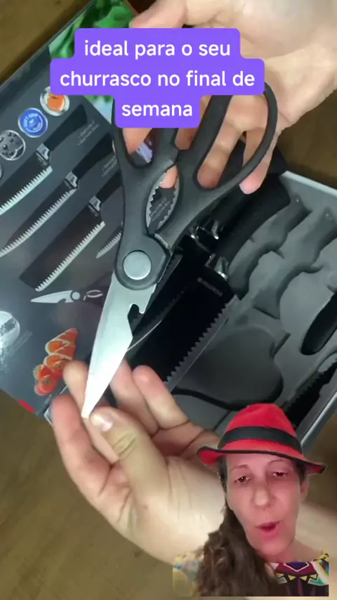 kit 6 peças facas tesoura culinária descascador de legumes