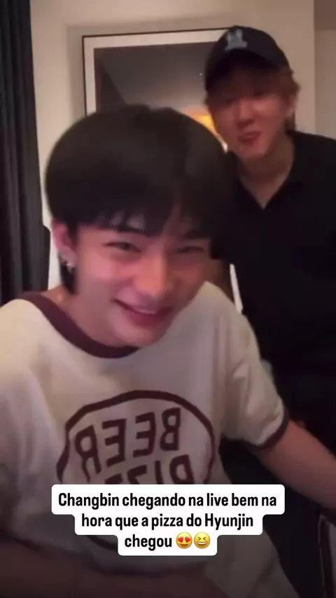 Live do hyunjin e o Chang Bin chegou bem na da pizza 🍕 que hyunjin pediu kkkk #Hyunjin❤️🥟 #changbin🐰🐷❤️