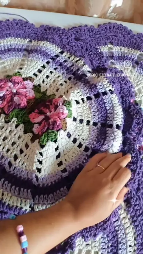 Pra que gosta de combinações com tons de roxo 💜 Jogo de banheiro com três peças nas cores cru, lilás e roxo,com detalhes em flor 🌷 Valor :$100+frete #crochet #feitocomamor #tapetedecroche #crocheterapia #decoracaodeinteriores