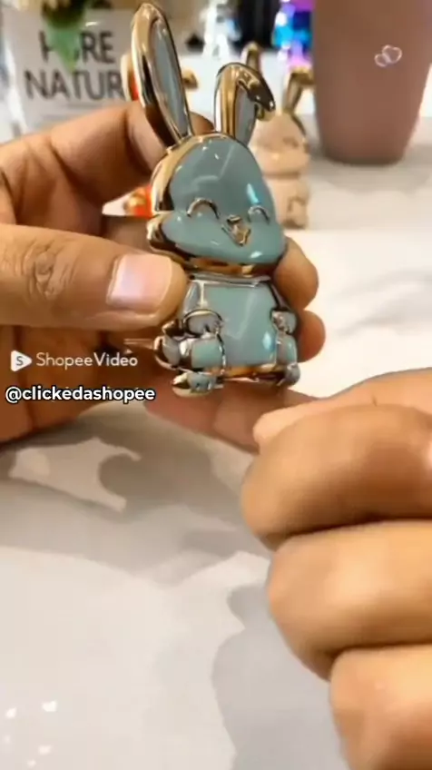 📌 Suporte para Telefone Celular com Espelho e Caixa de Coelho Bonito Tipo Montado nas Costas . @clickedashopee #clickedashopee