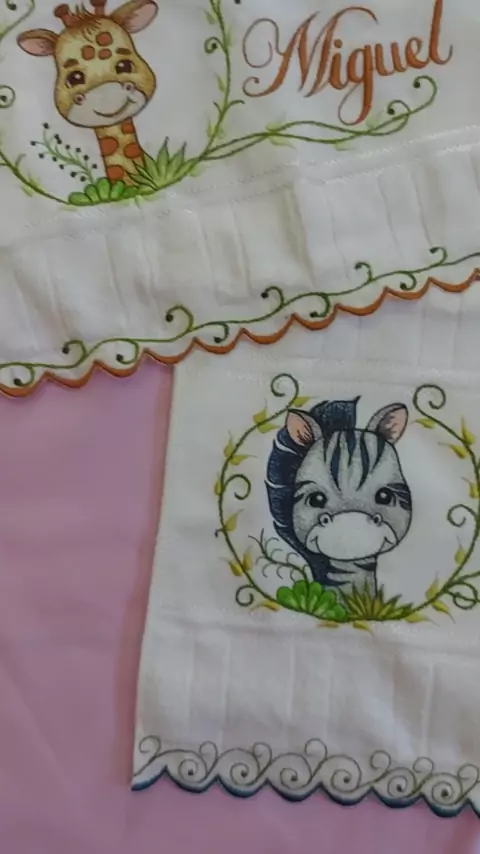 Toalhas bordadas na máquina de pedal #bordado #AquiGeralBrilha #artsdacli #enxovaldebebe #bordadoartesanal