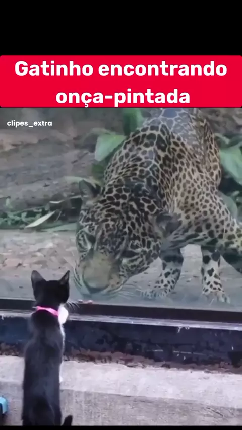 Gato cara a cara com onça pintada #gato #animais #onça #fofo