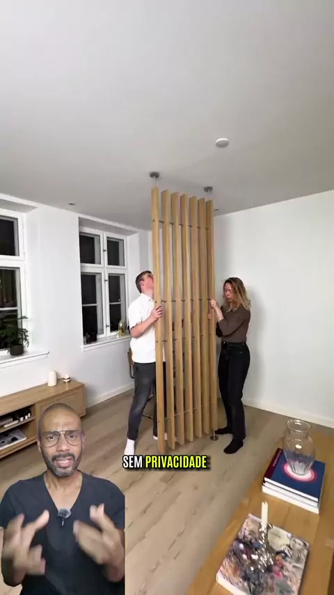Mudar o layout da casa virou um sonho com esse painel ripado de pressão que divide ambientes sem obra pesada #divisorias #decoracaoclean #reformaemcasa ▶️ Já clica 2X na tela se isso deixaria sua casa mais aconchegante.