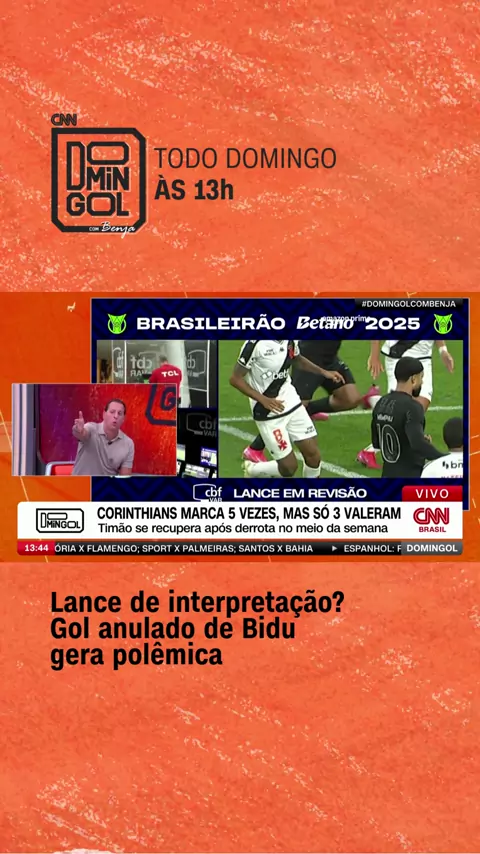 “FALTA CONFIANÇA PARA A ARBITRAGEM” Anderson Daronco foi duramente criticado após as decisões na partida entre Corinthians e Vasco, na Neo Química Arena. O Timão chegou a anotar cinco gols, mas apenas três foram validados. No #DomingolcomBenja, o assunto foi debate e gerou opiniões diversas entre os comentaristas. #CNNEsportes #CNNAoVivo #Futebol #Arbitragem