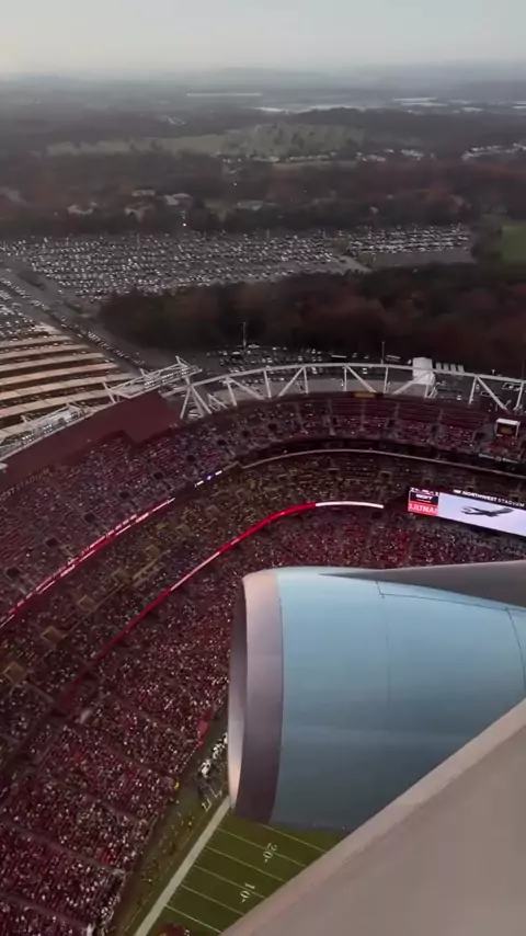 Air Force One fazendo um sobrevoo surpresa no Northwest Stadium durante o Washington Commanders vs. Jogo do Detroit Lions! 🏈🇺🇸