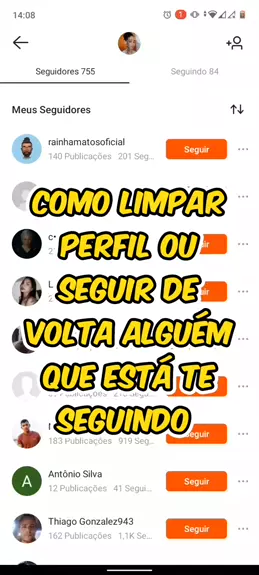 COMO SEGUIR AS PESSOAS DE VOLTA, E LIMPAR O PERFIL?
