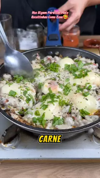 Carne com ovo, agora só fazemos assim. #receitacomcarnemoida #ovocomqueijo #EstrelaDeFamília