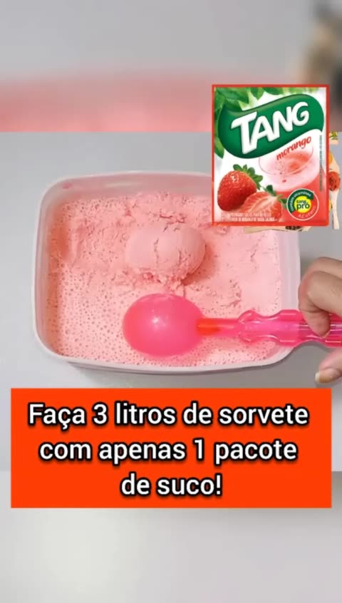 Faça 3 litros de sorvete com apenas 1 pacote de suco Tang! #sorvete #receita #food #receitas #bonuskwai