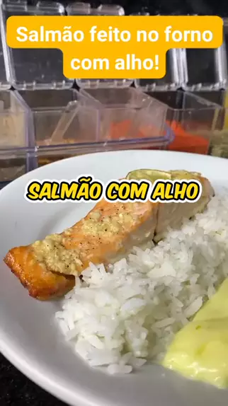 Salmão feito no forno com alho #culinaria #Peixes