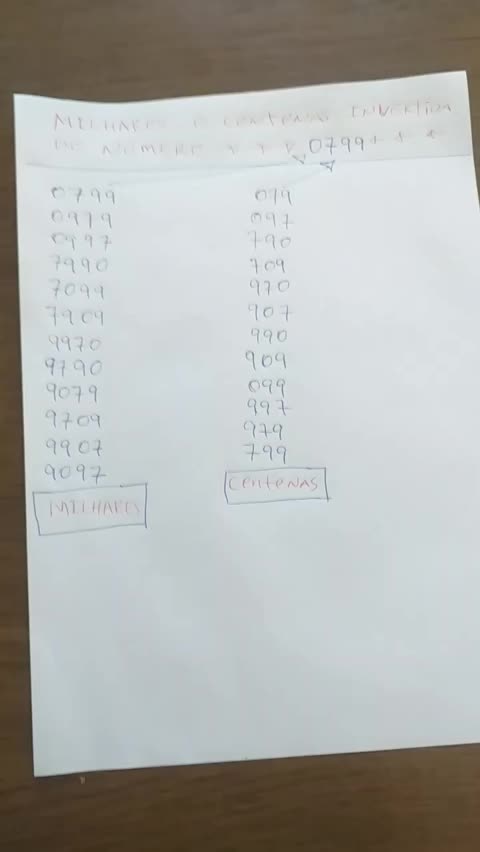 desdobramentos de milhar e centena invertida do número 0799