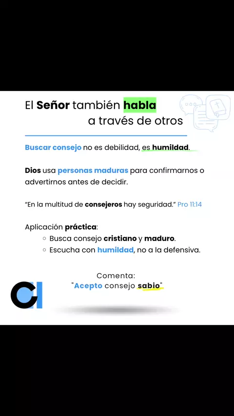 ✨ Dios no te diseñó para decidirlo todo en solitario. Muchas veces su cuidado se manifiesta a través de voces piadosas que confirman, advierten o muestran ángulos que tú no estás viendo. La Escritura nos enseña: “Donde no hay dirección sabia, caerá el pueblo; Mas en la multitud de consejeros hay seguridad.” Proverbios 11:14 👨🔧Aplicación práctica: ✅• Identifica a una o dos personas maduras en la fe y háblales con transparencia sobre las decisiones que estás por tomar. #JESUS