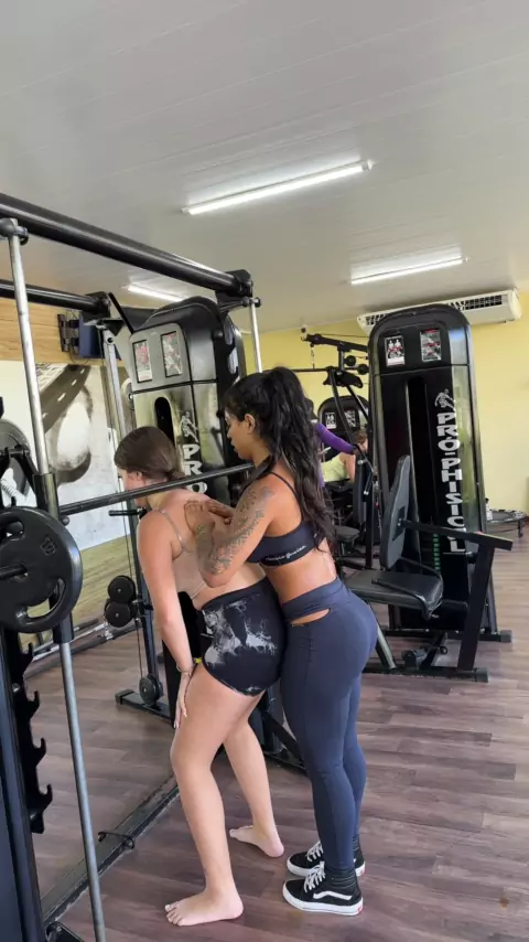 Elas fazendo agachamento na máquina