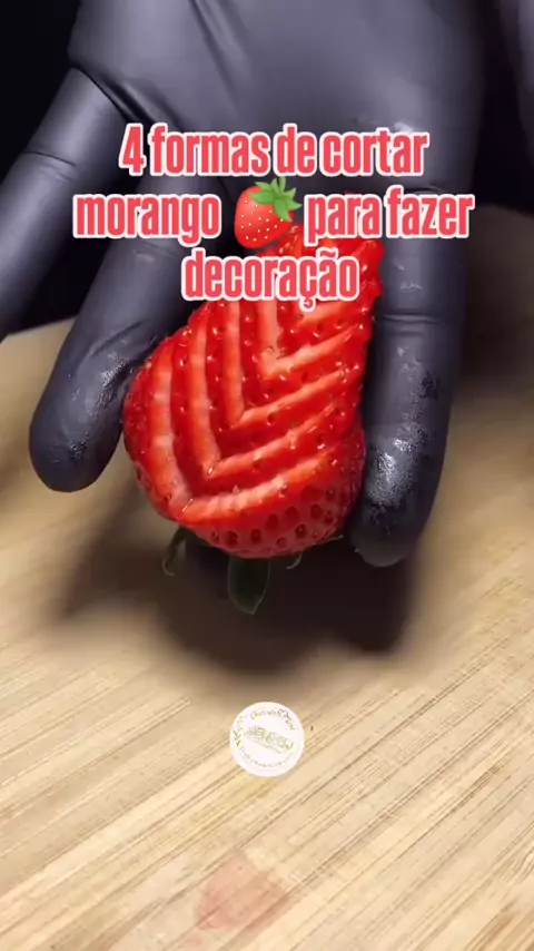 ✨ Quer deixar seus doces ainda mais lindos? Hoje te mostro 4 formas fáceis e criativas de cortar morangos para decoração! 🍓❤️ 1️⃣ Leque de morango: Corte em fatias finas sem separar a base e abra em formato de leque. 2️⃣ Flor de morango: Faça cortes laterais em camadas para abrir como uma flor. 3️⃣ Coração de morango: Corte ao meio e dê uma leve modelada na ponta para criar o formato de coração. 4️⃣ Morangos em fatias: Simples, delicado e perfeito para cobrir bolos e tortas. 👉 Salve essa dica