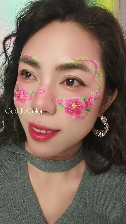 Peach blossoms blooming across your face, soft and rosy — spring at first glance ✨#Facepainting #facepaint #facepainted #face #facepaintingkids