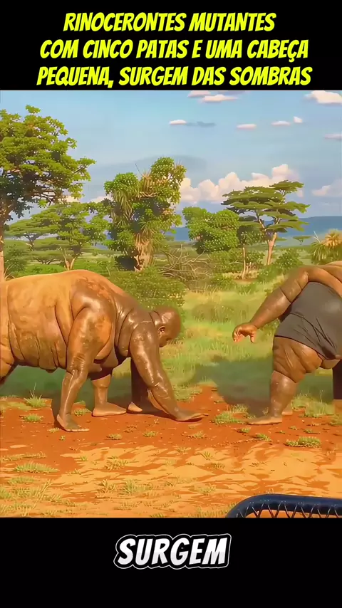 RINOCERONTES MUTANTES e gigantes com cinco patas robustas e uma cabeça pequena, surgem das sombras.