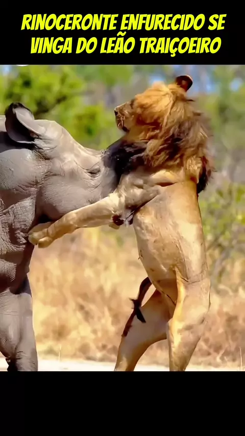 VINGANÇA! O rinoceronte, enfurecido e determinado, finalmente tem a chance de se vingar do leão traiçoeiro...