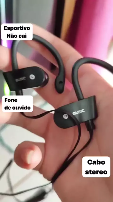 Fone de ouvido cabo estéreo esportivo