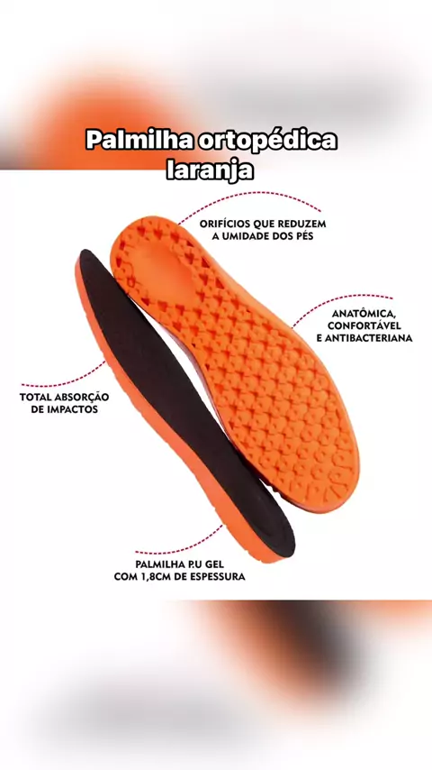 Palmilha ortopédica laranja para tênis