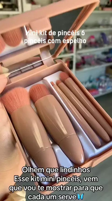 Mini kit de pincéis 6 pincéis com espelho