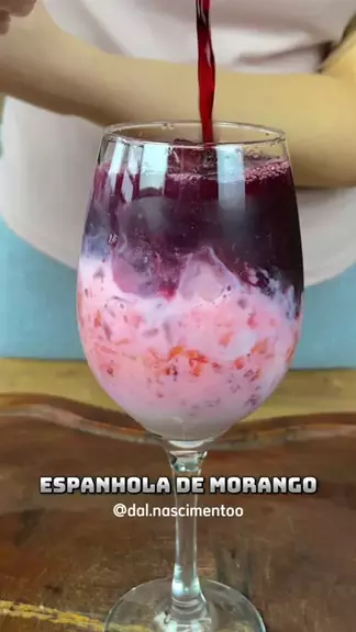 Espanhola de morango sem álcool Ingredientes: 6 Morangos 4 colher de sopa de leite condensado Bastante Gelo Suco de uva até completar #culinaria #receitasfaceis #drinks #drink #receitas