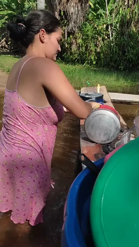 lindo lavar louça só em 8 em 8 dias porque lá em casa não tem água