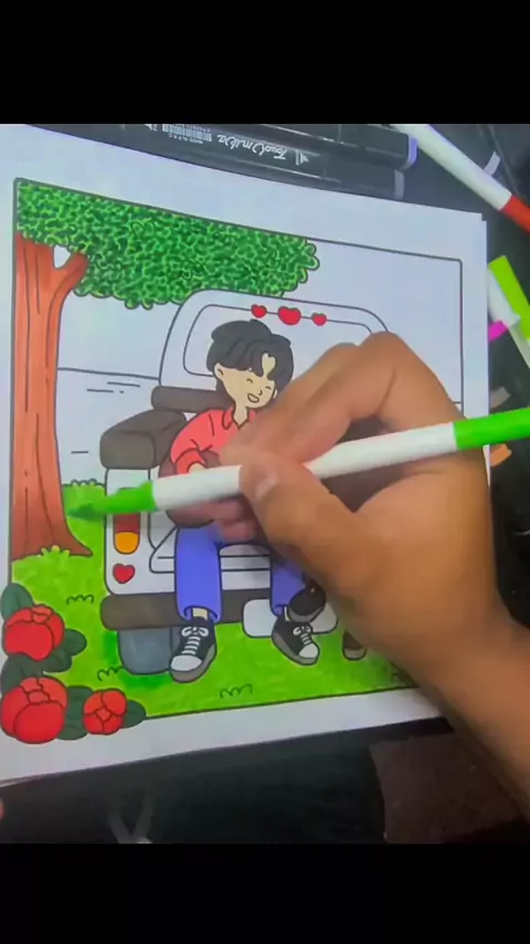 Olga esse casal 😳 pintando desenho Bobby Good por do sol romântico #bobbiegoods #Colorindo #canetas #Colorindo