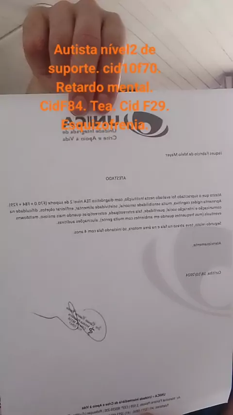 #Autista nível2 de suporte. cid10f70. Retardo mental. CidF84. Tea. Cid F29. Esquizofrenia. More