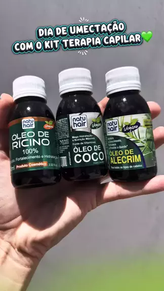 ✨Dia de umectação com o Kit Terapia Capilar Natuhair: Óleo de Coco + Rícino + Alecrim ✨ Meu cabelo ficou lindo, brilhante, macio e perfeitooo 💚
