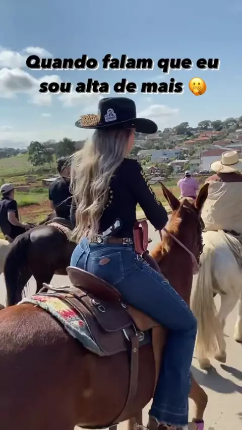 qndo falam que sou alta de mais* aooooow cavalo,mulher e problema tem que ser grande! aooooow 💥💥 vestindo: @2k_jeans(O1061849357) @️️➰2K JEANS➰(O150000026506586) #boiadeira #cowgirl #mula #altademais #🐎cavalo