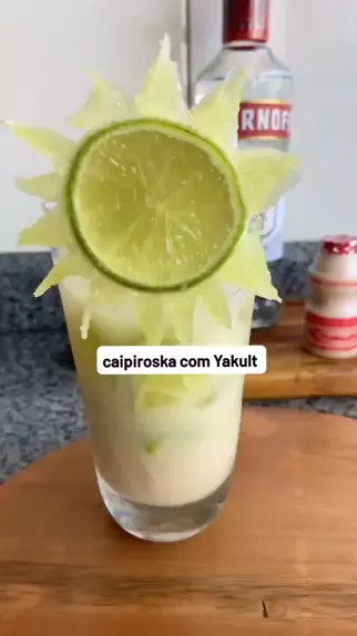 ✨Caipiroska de Yakult com sol de limão, vem aprender como se faz☀️ ❤️ . ✅ No drink temos: *1 limão Taiti *1 colher de açúcar *1 dose de vodka *1 yakult gelado *Gelo ✅Macerar com cuidado o limão para não amargar,junte uma colher de açúcar,depois gelo e vodka,por último o yakult,decore com o sol de limão. #cocktails #drinksemcasa #topz #drinks