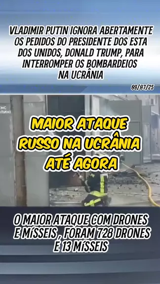 Agora, a Rússia fez o maior ataque com drones e mísseis ao território ucraniano desde o início da invasão militar, há quase três anos e meio. Segundo a Força Aérea da Ucrânia, foram 728 drones e 13 mísseis, quase todos abatidos. #guerra #Rússia #Ucrânia #ÚltimasNotícias #KwaiNotícias