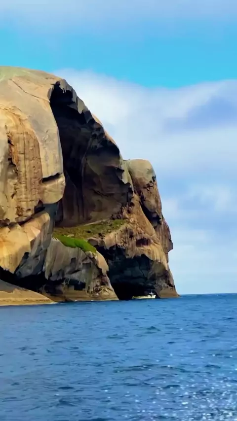 Essa é a Skull Rock na Austrália, marco icônico que recebeu o nome por sua forma única, semelhante a uma caveira. A ilha tem sido um destino popular para caçadores de emoções e fotógrafos, graças à sua beleza misteriosa de tirar o fôlego! 📷🪨🇦🇺 📍 Skull Rock (também conhecido como Cleft Island), Austrália #australia #Paisagem #Natureza #destinomaisincriveis #viagem