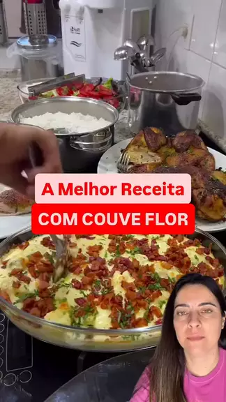 • 1 maço de couve-flor • 800 ml de creme de leite fresco • 350 g de bacon picado • 1 xícara (chá) de queijo parmesão ralado • 300 g de mussarela ralada • 1 pitada de noz-moscada • ½ cebola ralada • 30 g de manteiga • 1 colher (café) de pimenta-do-reino • ½ maço de cheiro-verde picado • Sal a gosto #dgcasa #receitas #couveflor #receitasgostosas #couveflorgratinada