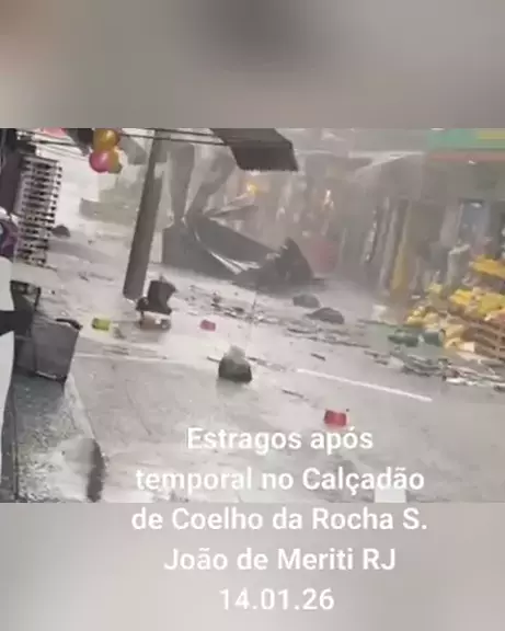 Estragos após temporal no Calçadão de Coelho da Rocha S. João de Meriti RJ 14.01.26