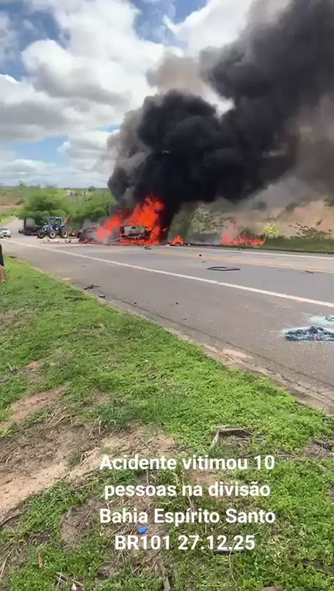 Acidente vitimou 10 pessoas na divisão Bahia Espírito Santo BR101 27.12.25