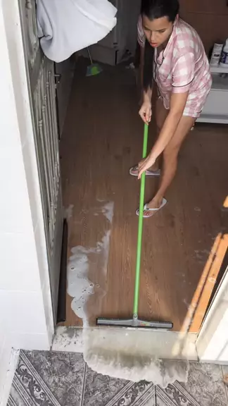 Não aguentei e taquei água nesse piso que não poderia ser lavado assim kkkk #lavando #faxina #limpeza #pisoadesivo #faxinando
