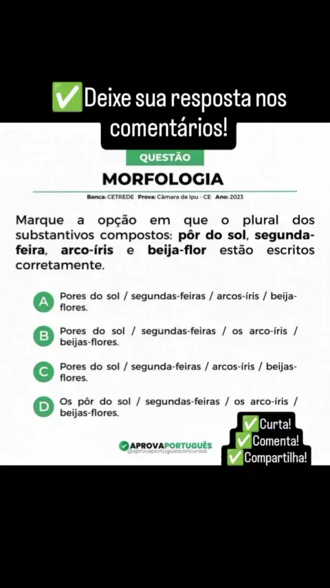 ✅️Deixe sua resposta nos comentários! ✅️Curta! ✅️Comenta! ✅️Compartilha! #DicasdePortugues