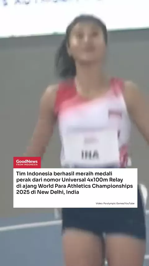 Indonesia berhasil meraih medali perak dari nomor Universal 4x100m Relay di ajang World Para Athletics Championships 2025 di New Delhi, India, pada tanggal 27 September hingga 5 Oktober 2025. Tim Indonesia diperkuat oleh Ni Made Arianti Putri (Guide: Bayu Aji Laksono), Nanda Mei Sholihah, Saptoyogo Purnomo dan Jaenal Aripin. Berada di posisi kedua, Tim Indonesia berhasil unggul dengan catatan waktu 47,81 detik. #GNFI #GNFInfo #GoodTalk #GoodNewsFromIndonesia #MakinTahuIndonesia