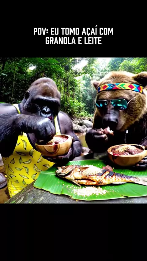 Açaí Com Granola e Leite #veo3 #vlog #gorila #ia #humor