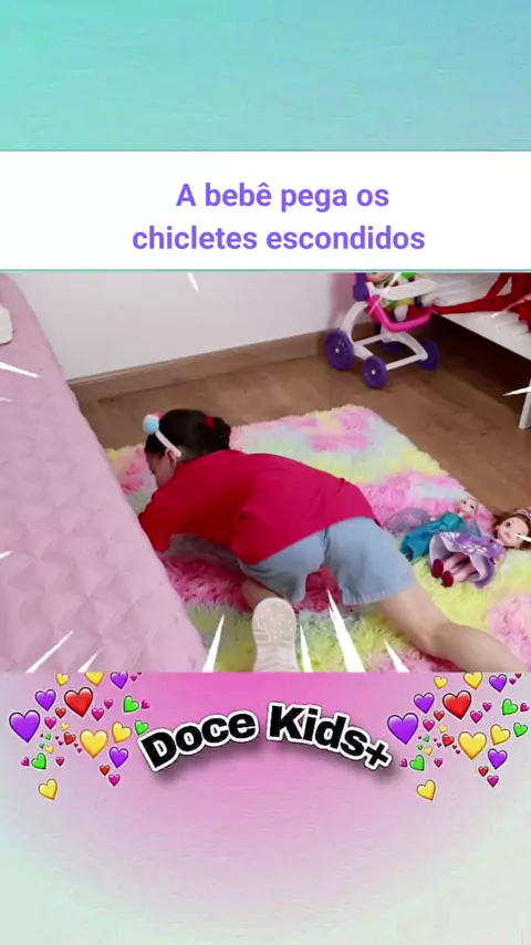 A bebê pega os chicletes escondidos