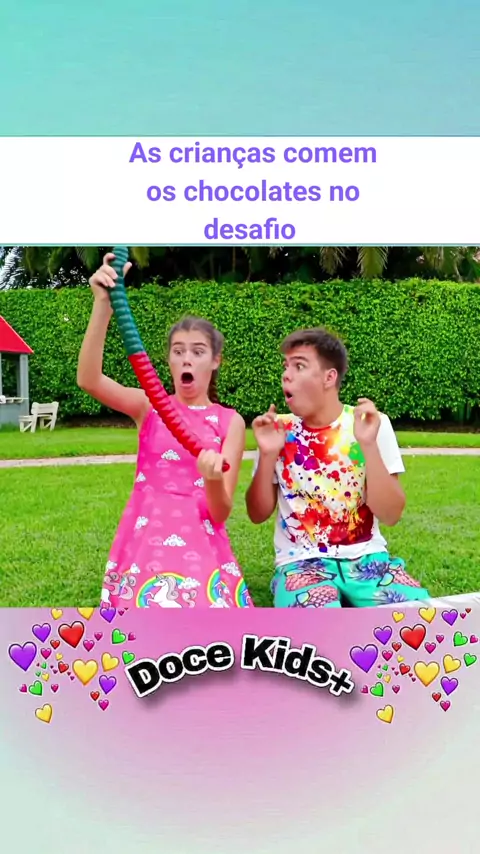 As crianças comem os chocolates no desafio