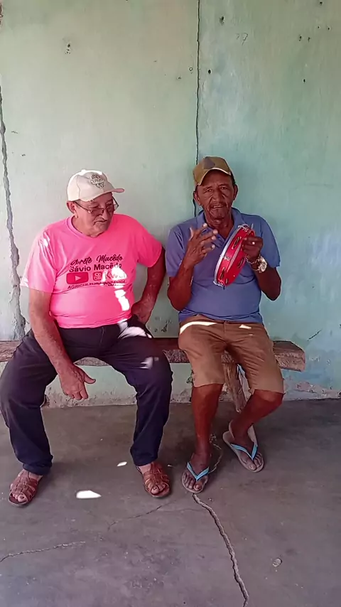 Sávio com seu amigo Gabriel batendo pandeiro no sítio Canabrava Mauriti
