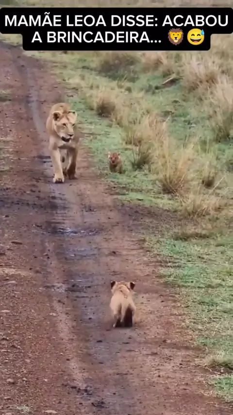 A mamãe leoa disse: acabou a brincadeira... 🦁😅 #mamaeleoa #leoa #filhotedeleao #leao #filhote