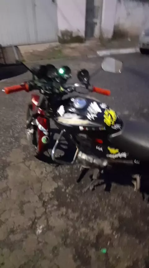 mostrando a caixinha de som pra moto pra minha irma