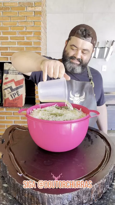 A lendária salada de cebola que é perfeita pra comer com carnes, pãozinho fresquinho, arroz ou até pura! . Ingredientes: (proporção feita no vídeo, se for fazer menos é só dividir!) 4,5kg de cebola; Para deixar de molho; Gelo; 2 copos americanos de açúcar; Água gelada até cobrir; Tempero; 3 colheres de sopa de sal (regule a gosto, experimente) 700ml de vinagre de maçã; 700ml de óleo de preferência de milho; 5 colheres de sopa de orégano desidratado(regule a gosto); 100ml de azeite por cima p