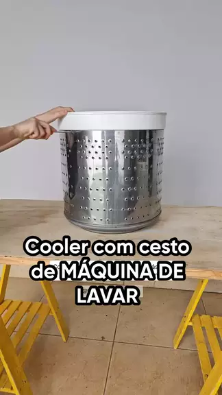 Mesinha de apoio com cooler reutilizando CESTO de MÁQUINA DE LAVAR💡 O Everton nem gostou, né?😂 O que você colocaria? Dá até pra colocar um vaso de planta no lugar do balde de gelo, hein😉 #homedecor #diydecor #decoraçao #ideias #destaque