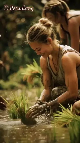 Gadis cantik dari eropa belajar tanam padi #perkebunan #gadiscantik #eropa #tanampadi #cantik
