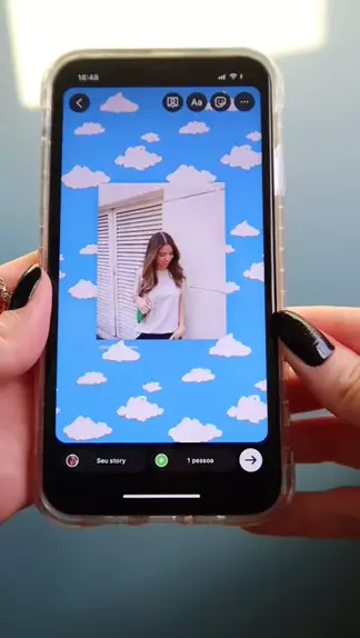 Como compartilhar de uma forma criativa sua foto nova nos stories ☁️☁️ procure nos gifs por: clouds
