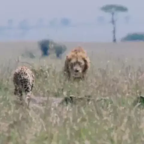 Guepardo & Leão, guepardo enfrenta Leão, para proteger seus filhotes.
